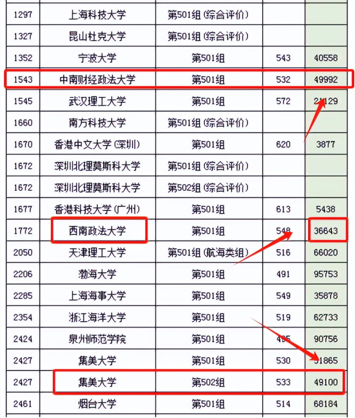 从物理类情况来看,学校提前批次的501专业组,录取分数仅532分,位次低至49992名,不敌西南政法大学501专业组的548分,也不敌集美大学502专业组的533分,实在是有些尴尬。