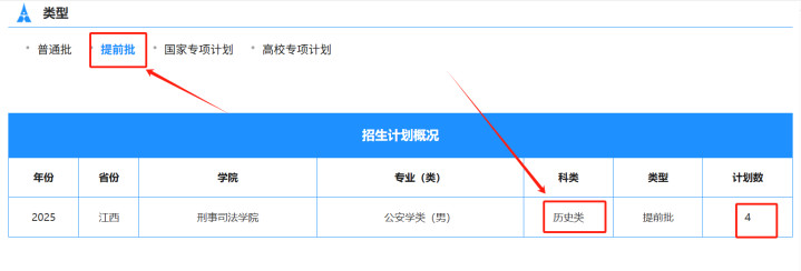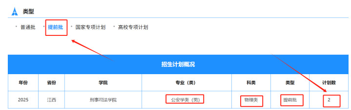 中南财大在江西提前批投放的专业,物理类和历史类均为公安学类(男),隶属于学校的刑事司法学院。
